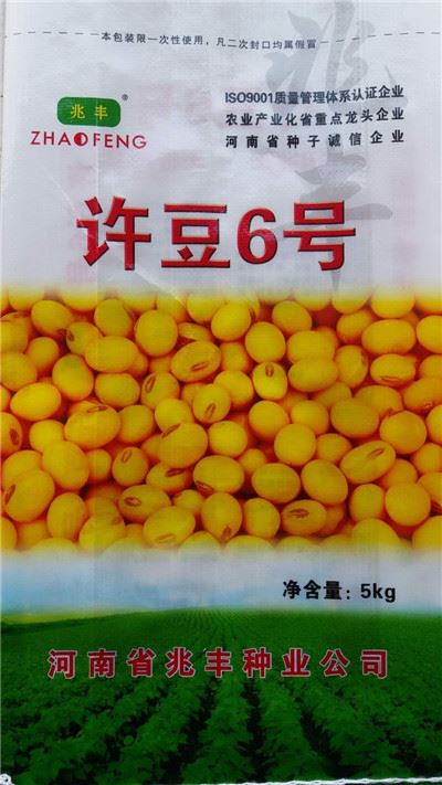 許昌市農科所選育的許豆6號屬中早熟品種,有限結莢習性。葉卵圓形,葉色深綠,中部偏大,上部漸小,通風透光性佳,落葉性好;株高92.9厘米,株型緊湊,莖稈粗壯,抗倒性好;紫花,灰毛,單株有效莢數51個,每粒莢數2-3粒,單株粒數96粒,籽粒圓形,黃色,有光澤,百粒重20克左右。脂肪含量高、綜合抗性好、耐密植、穩產高產,抗倒、抗裂莢、耐肥、耐旱、耐高溫。適宜河南省和周邊省市種植。
