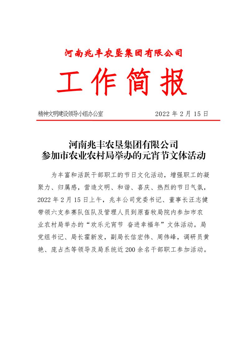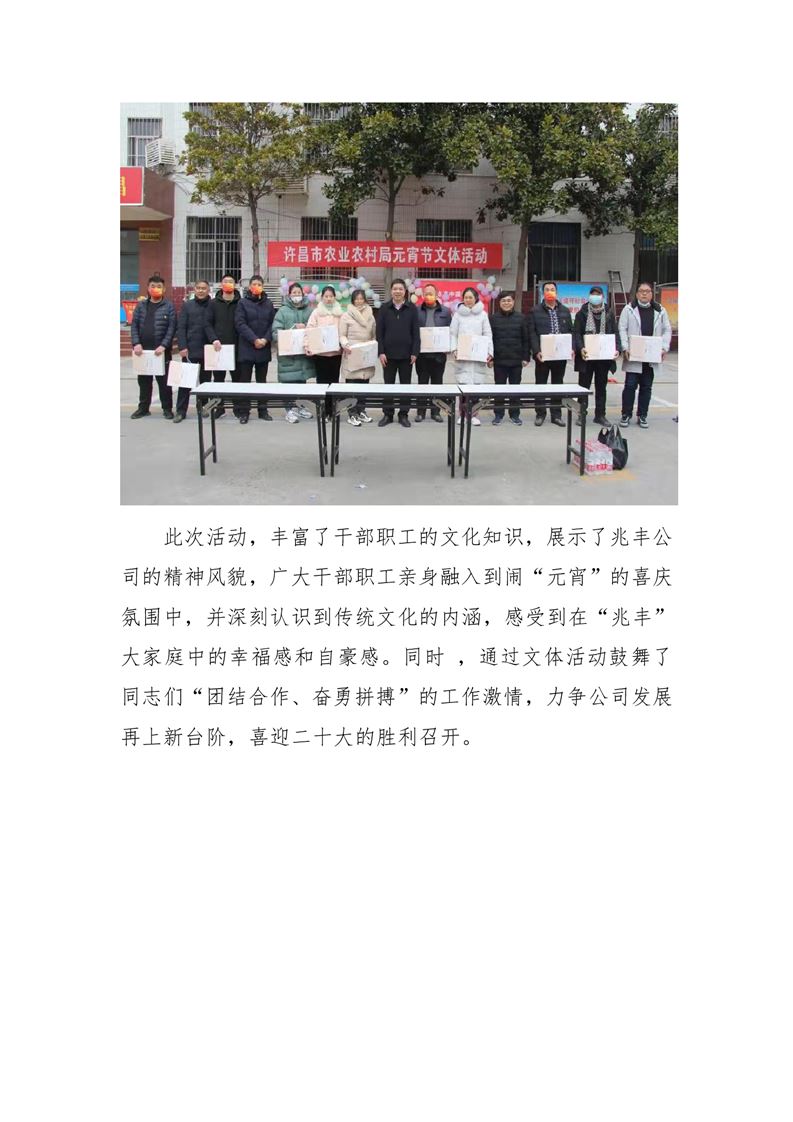 · 河南兆豐農(nóng)墾集團(tuán)有限公司 參加市農(nóng)業(yè)農(nóng)村局舉辦的元宵節(jié)文體活動(dòng)