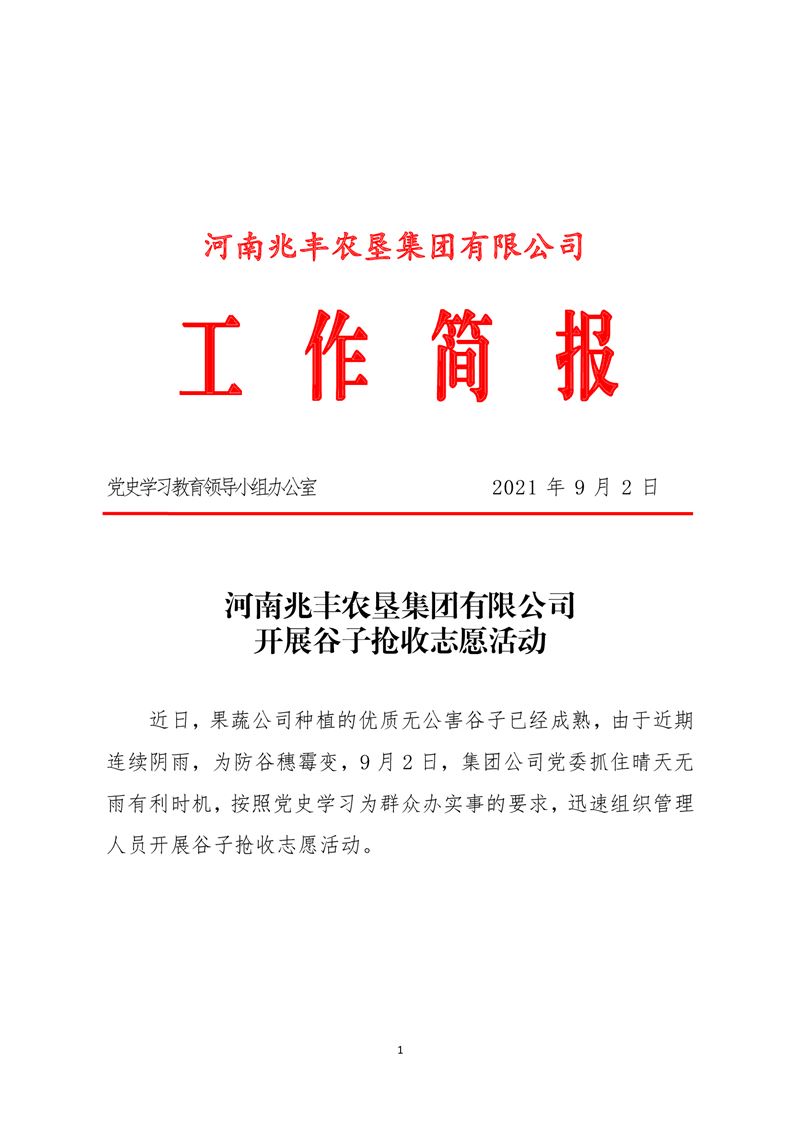 · 【我為職工辦實事】河南兆豐農墾集團有限公司 開展谷子搶收志愿活動