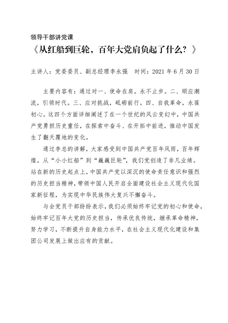 · 【領導干部講黨課】《從紅船到巨輪,百年大黨肩負起了什么?》——李永強