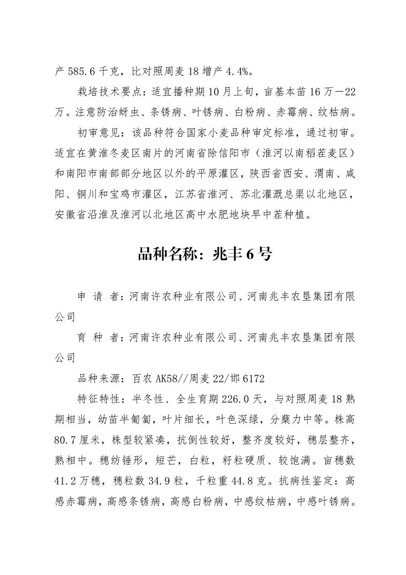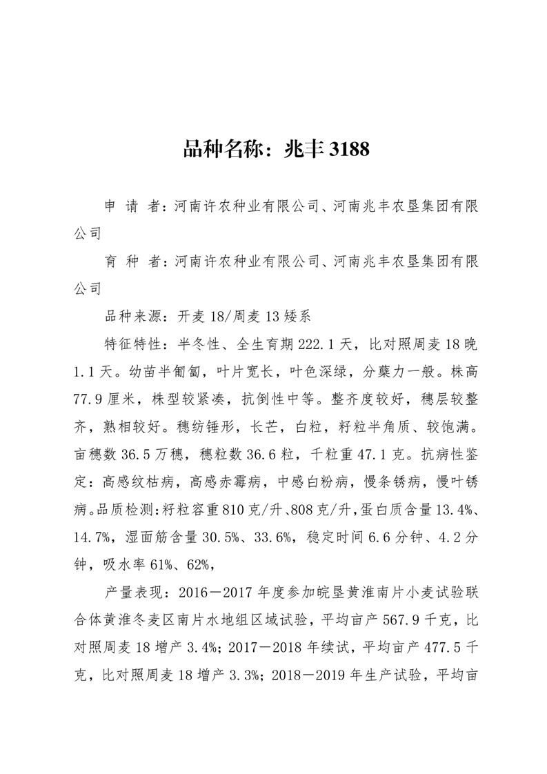 · 祝賀河南兆豐農墾集團有限公司 小麥品種兆豐3188、兆豐6號通過第四屆國家農作物品種審定委員會第五次小麥品種審定會議初審