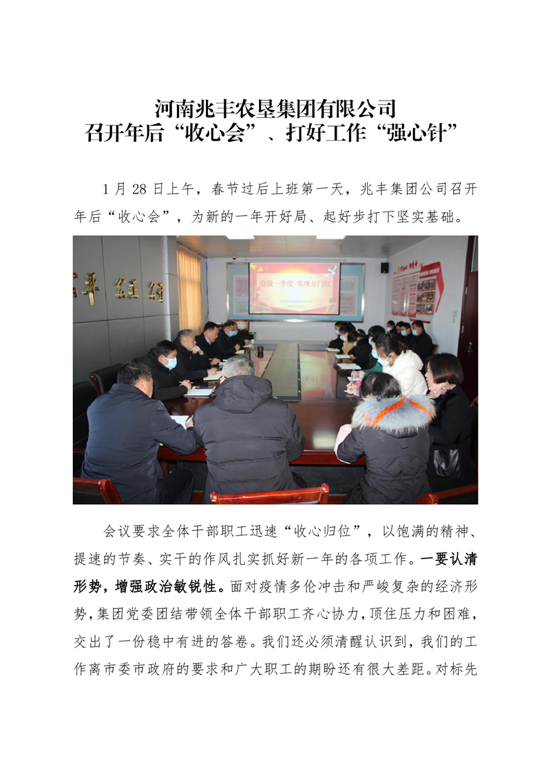 · 河南兆豐農墾集團有限公司 召開年后“收心會”、打好工作“強心針”