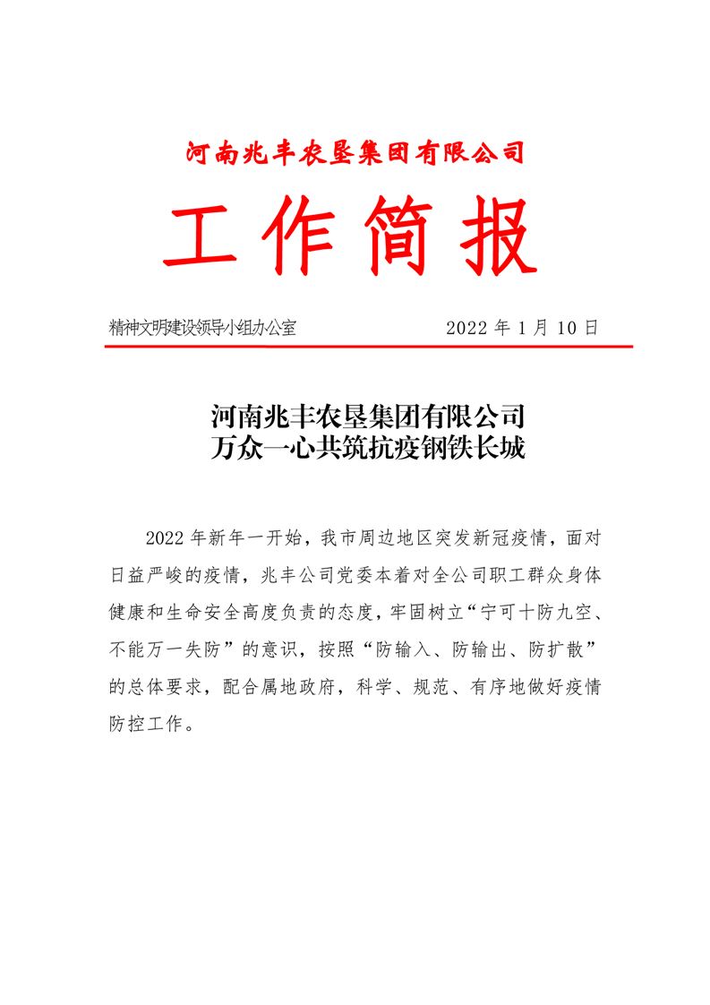 · 河南兆豐農墾集團有限公司 萬眾一心共筑抗疫鋼鐵長城