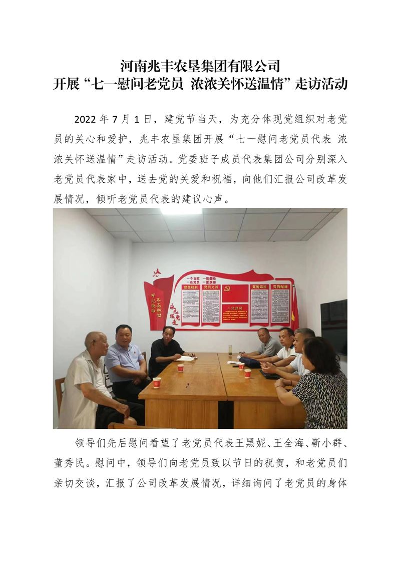 · 河南兆豐農墾集團有限公司 開展“七一慰問老黨員 濃濃關懷送溫情”走訪活動