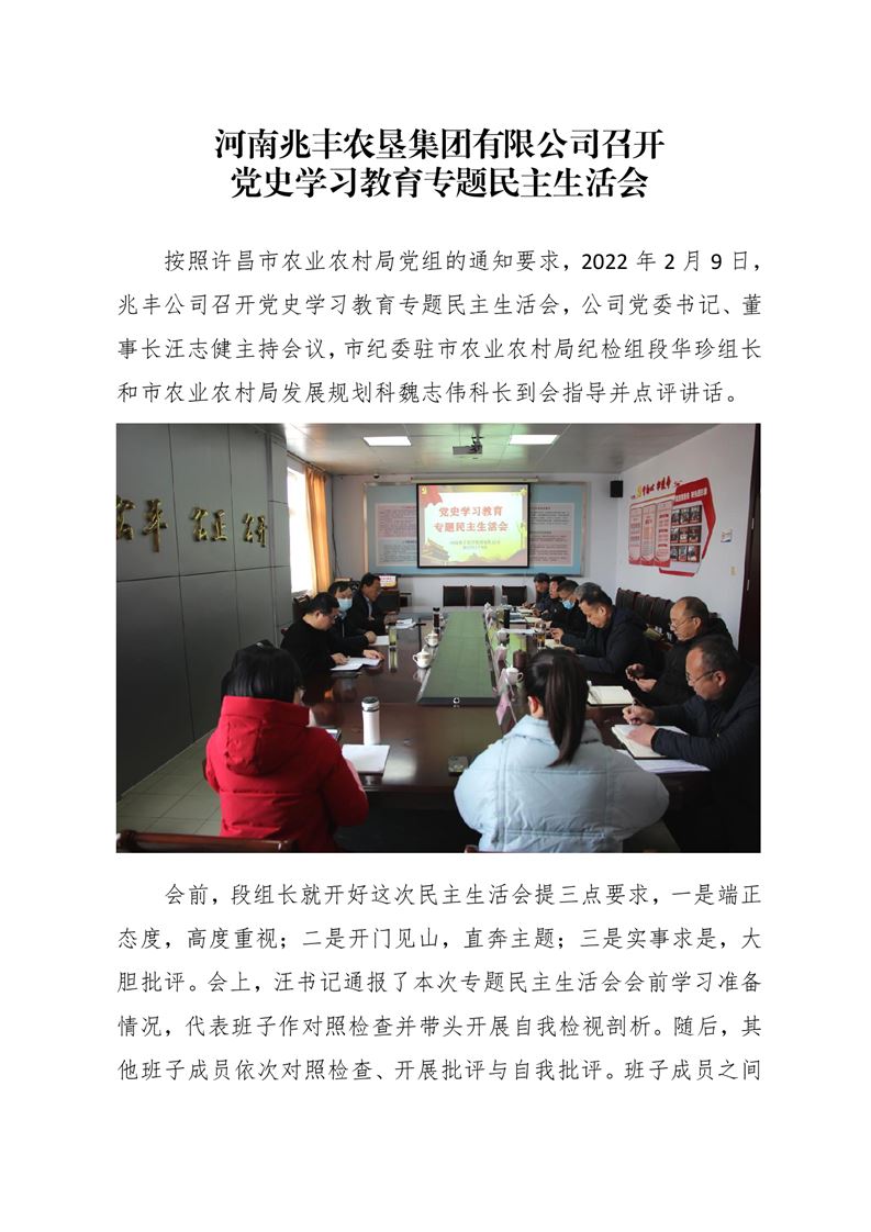 · 河南兆豐農墾集團有限公司 召開黨史學習教育專題民主生活會