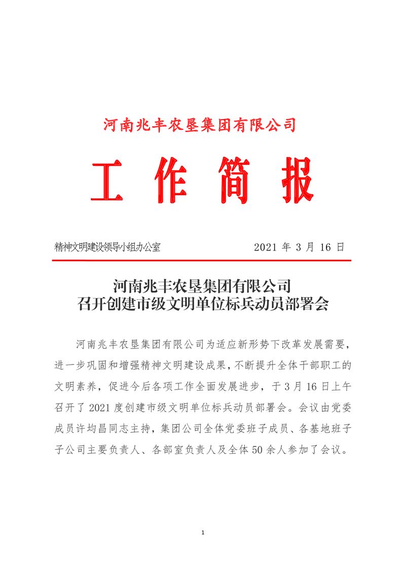 · 河南兆豐農墾集團有限公司 召開創建市級文明單位標兵動員部署會