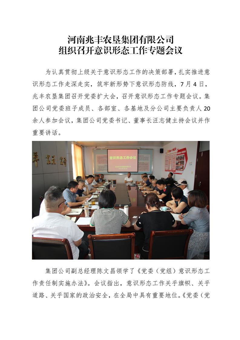 · 河南兆豐農(nóng)墾集團有限公司 組織召開意識形態(tài)工作專題會議