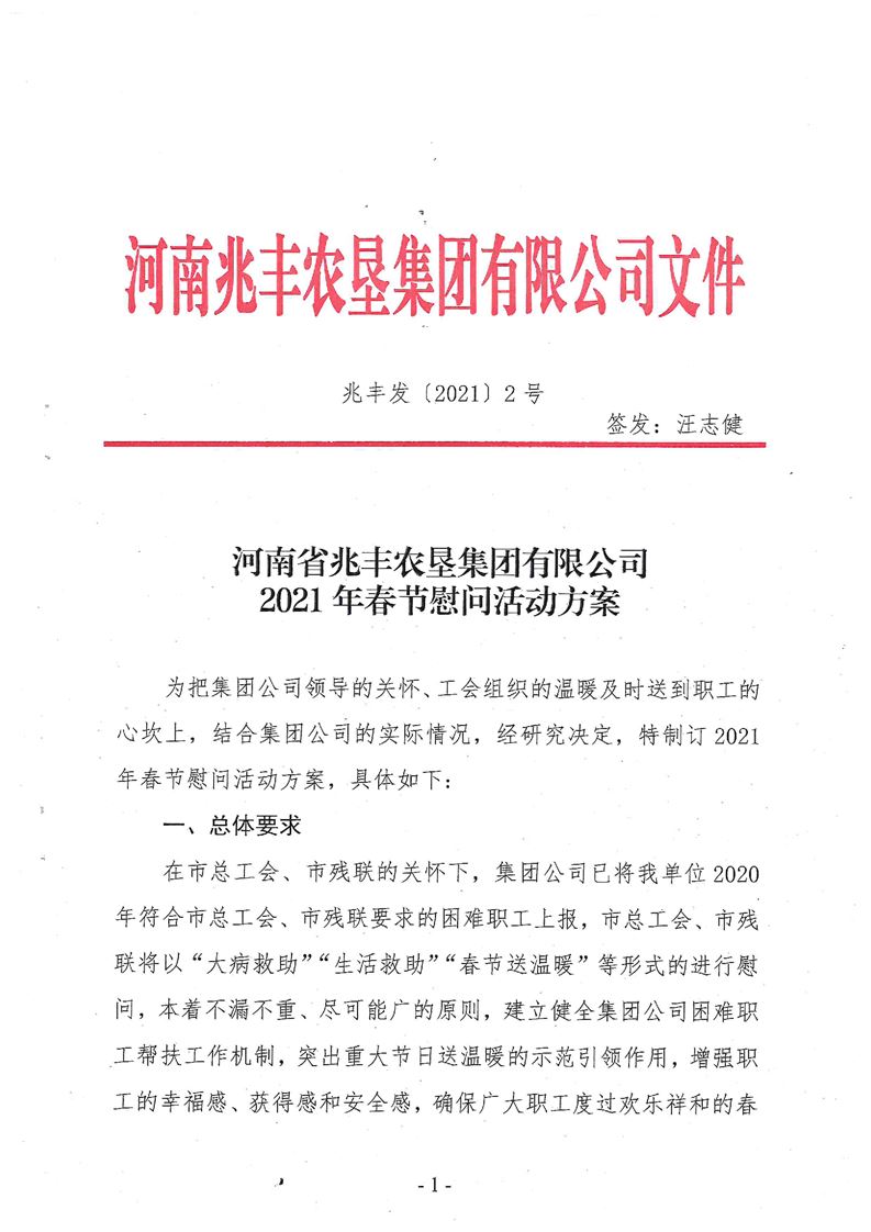 · 河南省兆豐農墾集團有限公司 2021年春節慰問活動方案