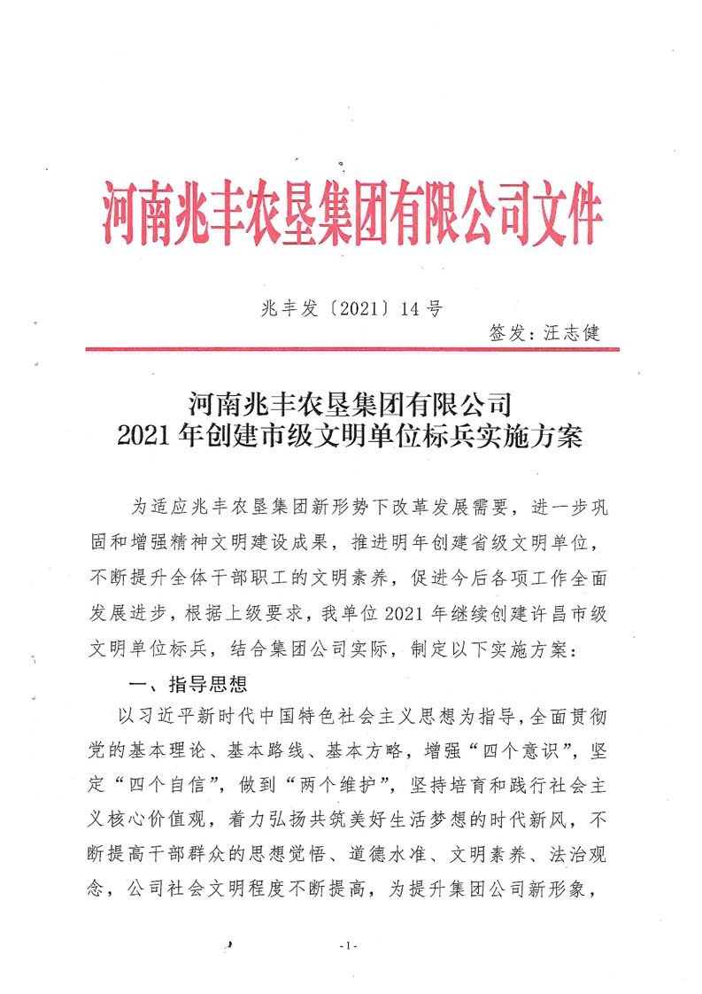 · 河南兆豐農(nóng)墾集團(tuán)有限公司 2021年創(chuàng)建市級(jí)文明單位標(biāo)兵實(shí)施方案