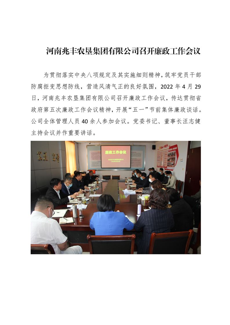 · 河南兆豐農墾集團有限公司召開廉政工作會議