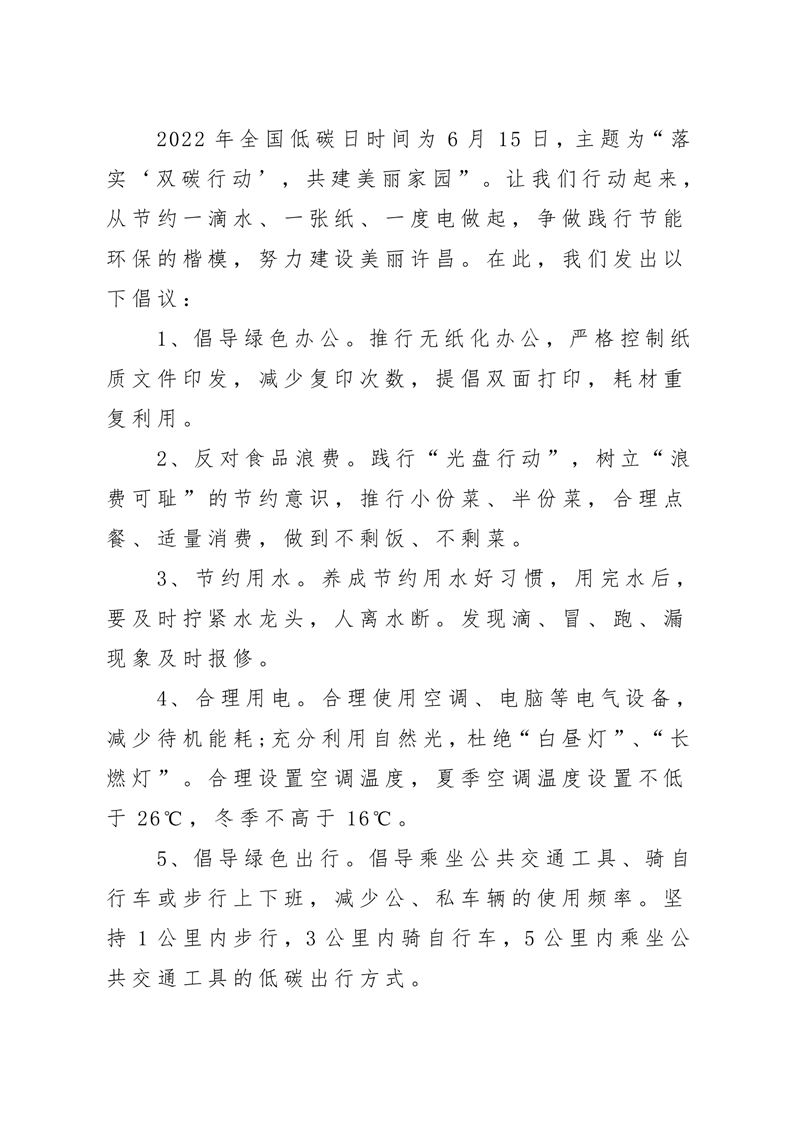 · “落實'雙碳行動',共建美麗家園”全國低碳日倡議書