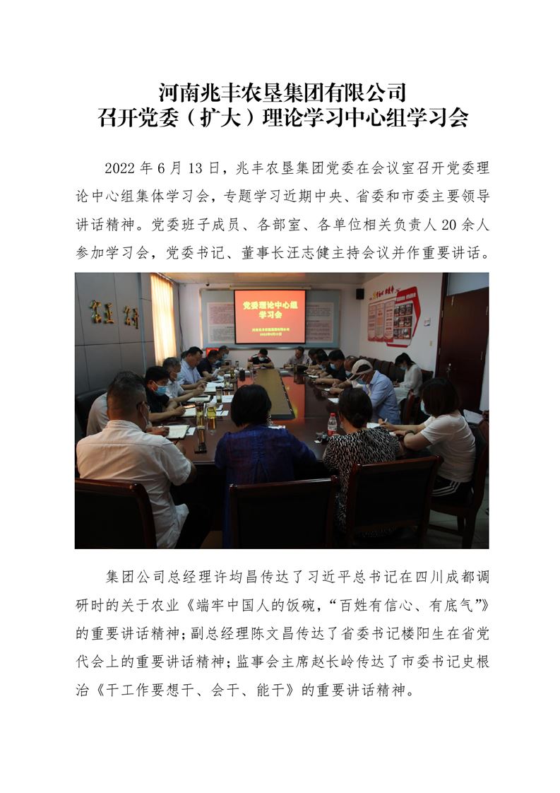 · 河南兆豐農墾集團有限公司 召開黨委(擴大)理論學習中心組學習會