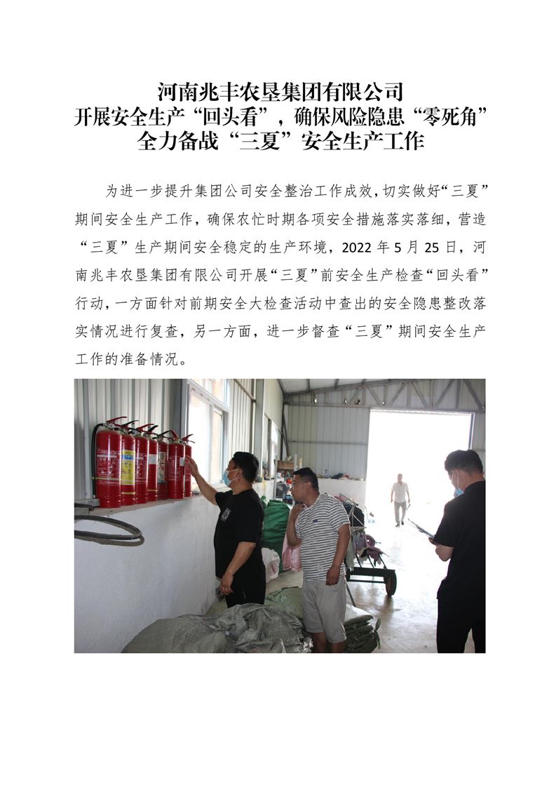 · 河南兆豐農(nóng)墾集團(tuán)有限公司 開(kāi)展安全生產(chǎn)“回頭看”,確保風(fēng)險(xiǎn)隱患“零死角”全力備戰(zhàn)“三夏”安全生產(chǎn)工作