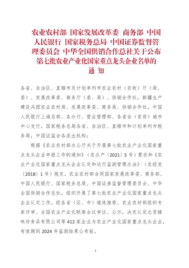 · 祝賀河南兆豐農墾集團有限公司榮獲第七批農業產業化國家重點龍頭企業