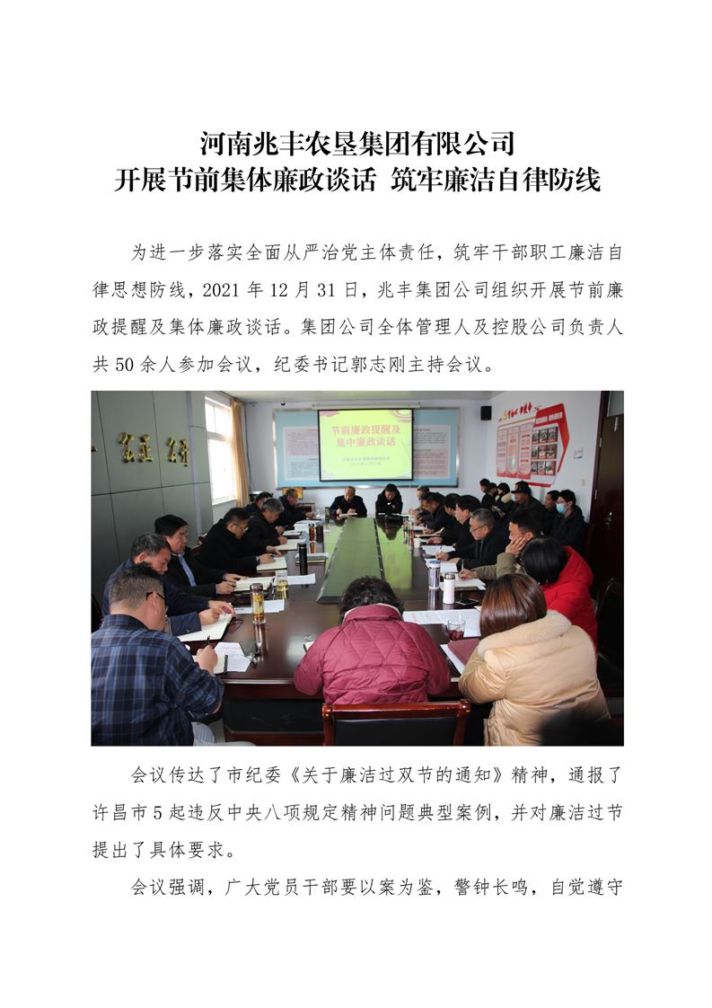 · 河南兆豐農墾集團有限公司 開展節前集體廉政談話 筑牢廉潔自律防線