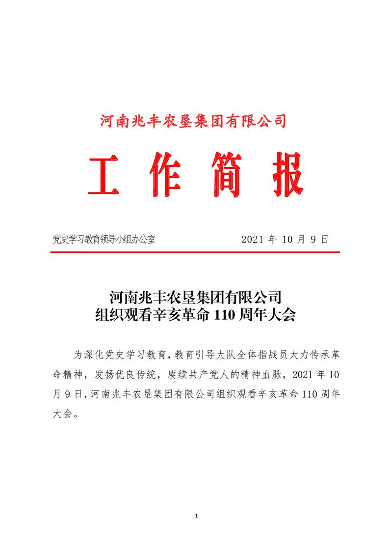 · 河南兆豐農(nóng)墾集團(tuán)有限公司 組織觀看辛亥革命110周年大會
