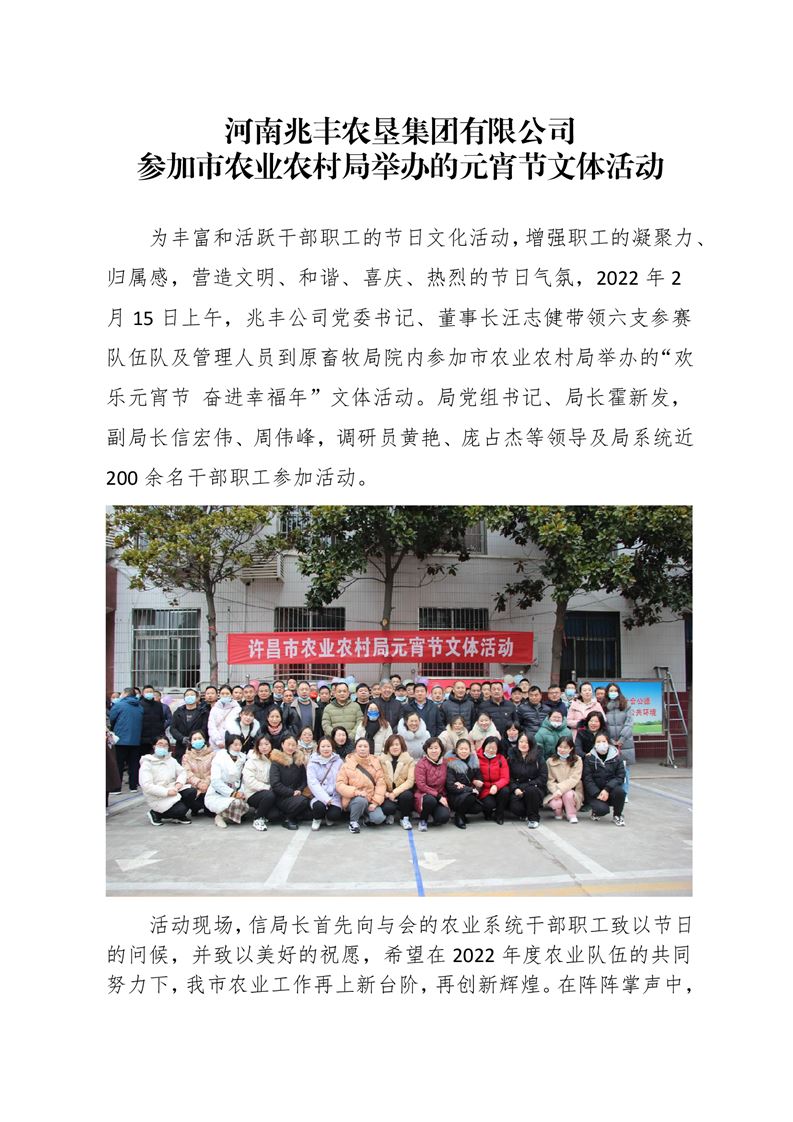 · 河南兆豐農墾集團有限公司 參加市農業農村局舉辦的元宵節文體活動