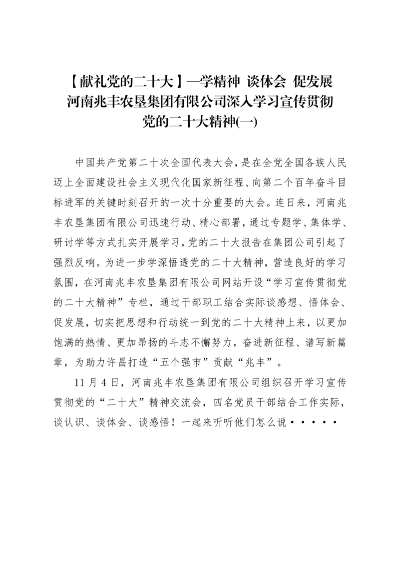 · 【獻(xiàn)禮黨的二十大】—學(xué)精神?談體會(huì) 促發(fā)展? 河南兆豐農(nóng)墾集團(tuán)有限公司深入學(xué)習(xí)宣傳貫徹黨的二十大精神(一)